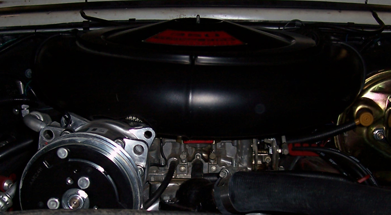 Final result, is it seems to work well. I have put a few hours of driving on it. Hasn't changed shape in the heat. Best advantage is it fits in the cramped engine bay of the Chevy II. It is not a tight fit to the Air Cleaner on the top, but good enough to perform its function.